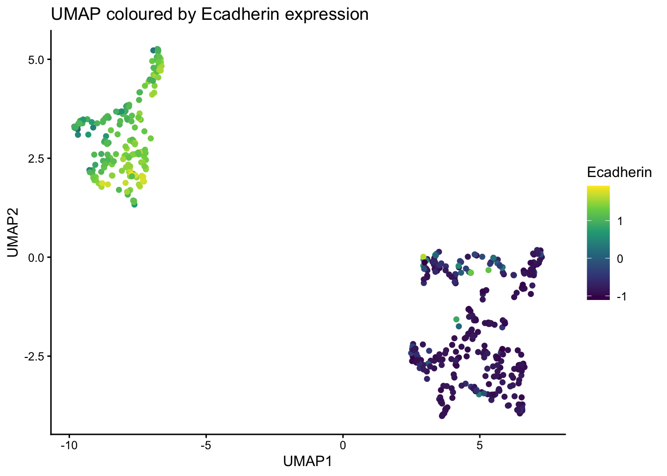 title = "Ecadherin expression distribution across clusters"