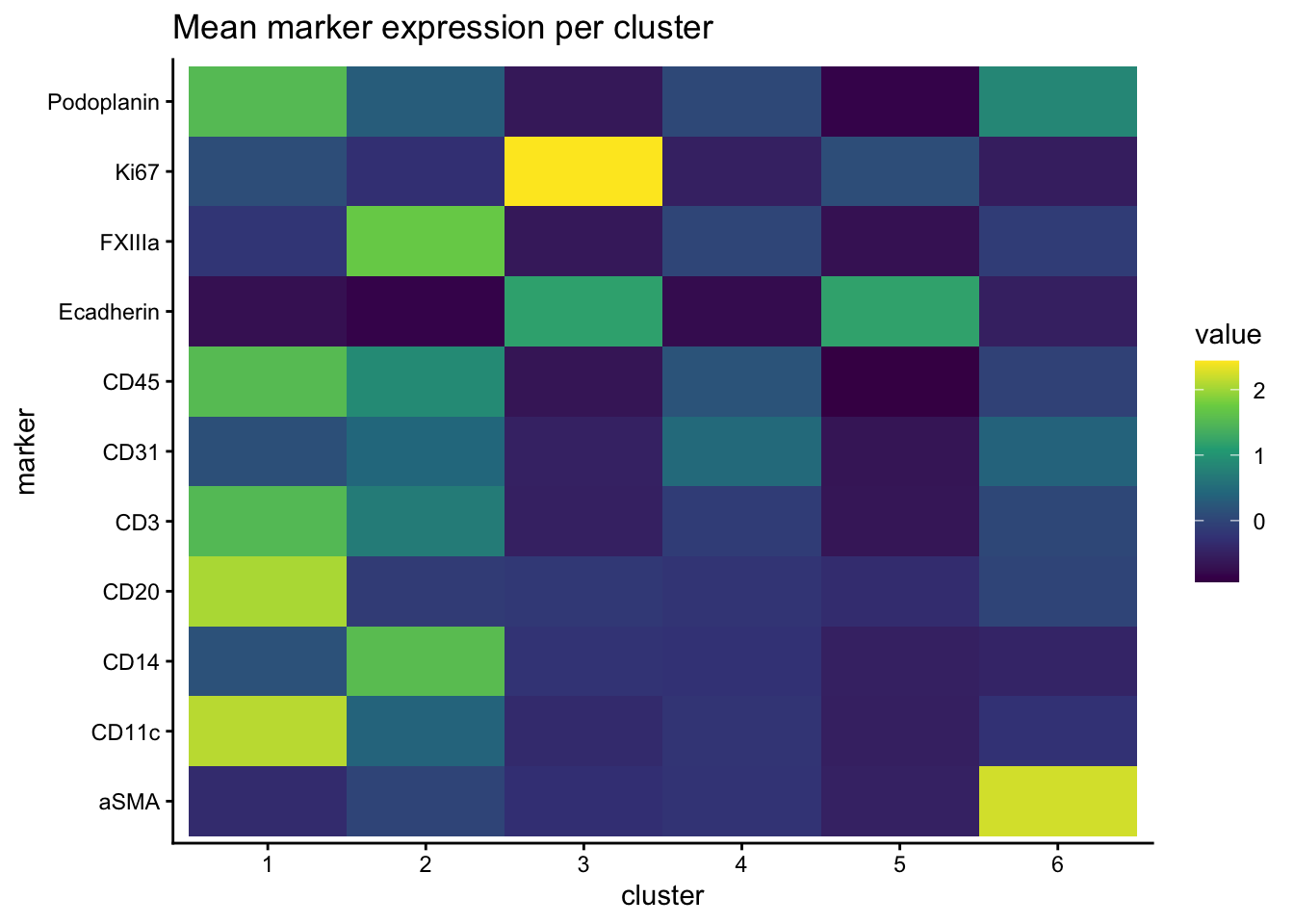 title = "Mean marker expression per cluster"