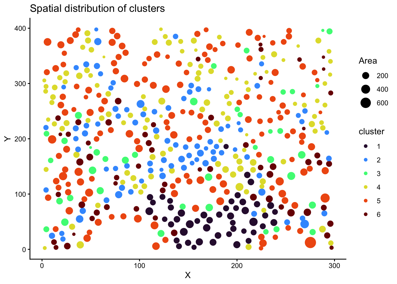 title = "Spatial distribution of clusters"