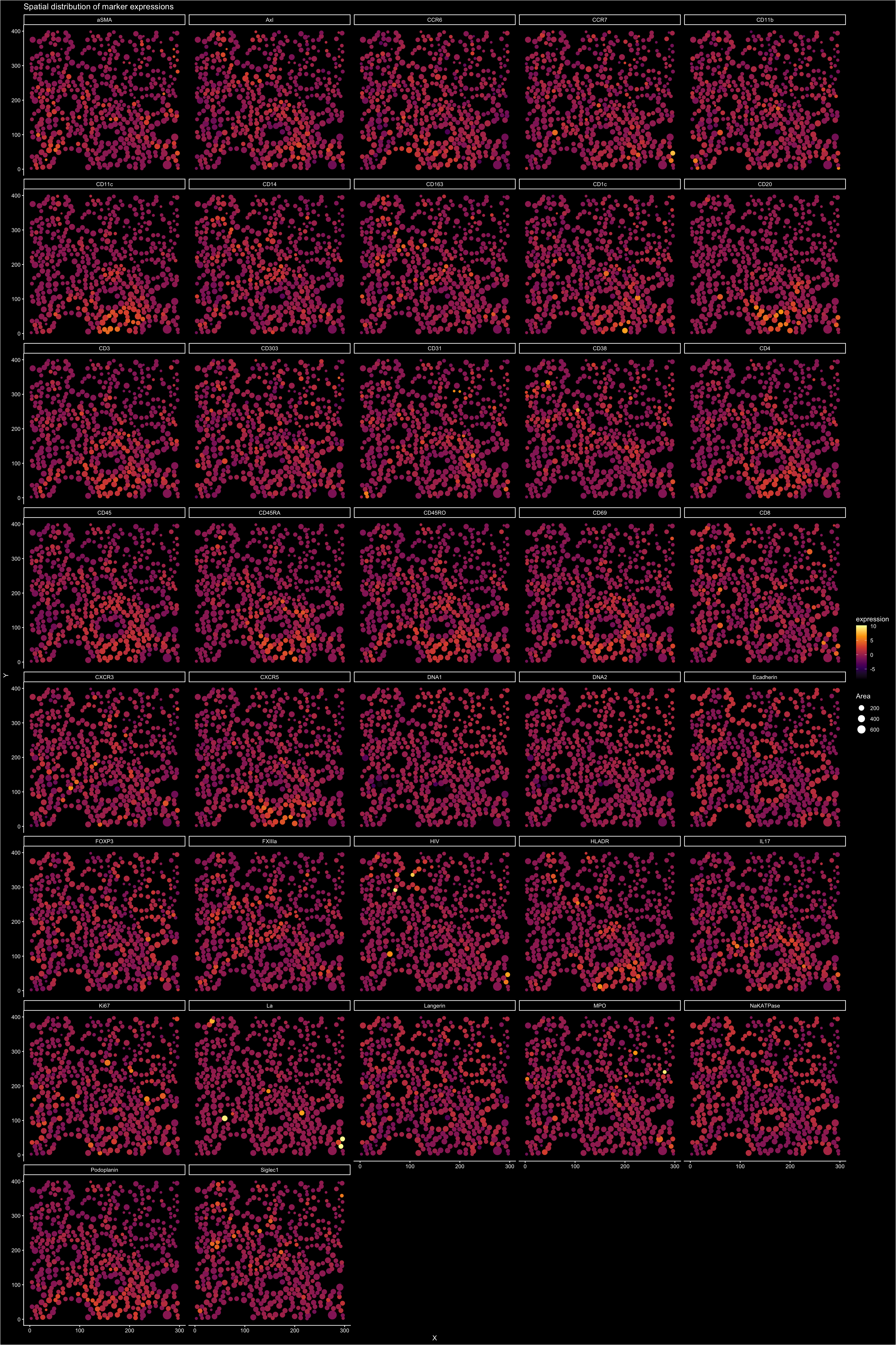 title = "Spatial distribution of marker expressions"